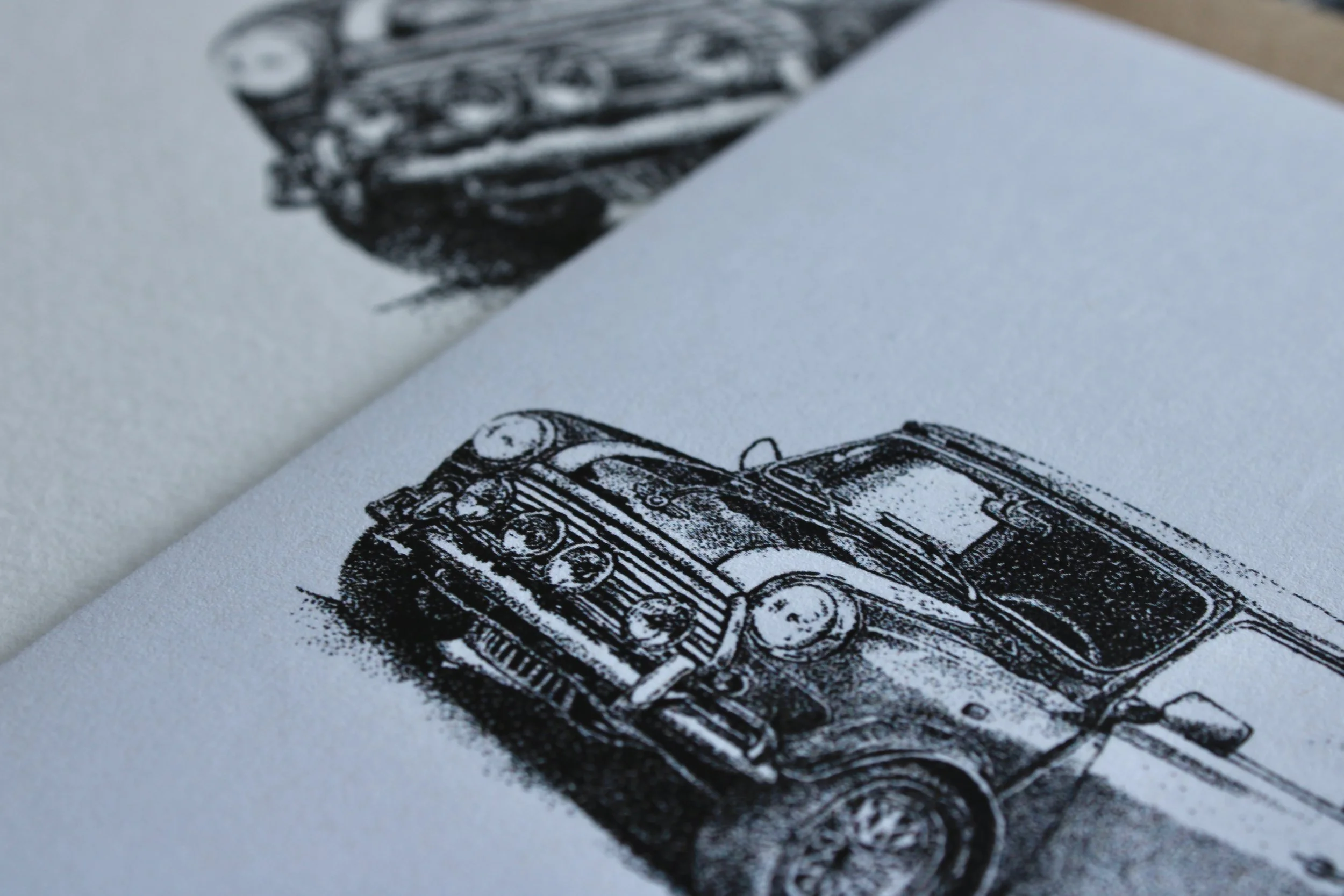 To create a pointillism portrait takes hours of work, each piece is made up of hundreds of thousands of tiny dots that I make by hand using a fine tipped brush pen. I offer portraits for: vehicles, pets (horses, dogs, rodents, birds and cats only) and people.